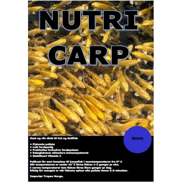 Beskrivelse Høst og vår diett til Koi og Gullfisk • Flytende pellets • Lett fordøyelig • Prebiotika forbedrer fordøyelsen • Betaglukaner stimulere immunsystemet • Stabilisert Vitamin C Fullkost fòr som benyttes til karpefisk i vanntemperaturer fra 5º C Når temperaturen er under 10?C fôres fisken 1-2 ganger pr uke. I varme temperaturer kan fisken fôres flere ganger pr dag. Riktig fòr mengde er når fiskene spiser alle pellets innen 3-5 minutter. Innhold: Protein 30% Fett 6% Fiber 2,9% |
