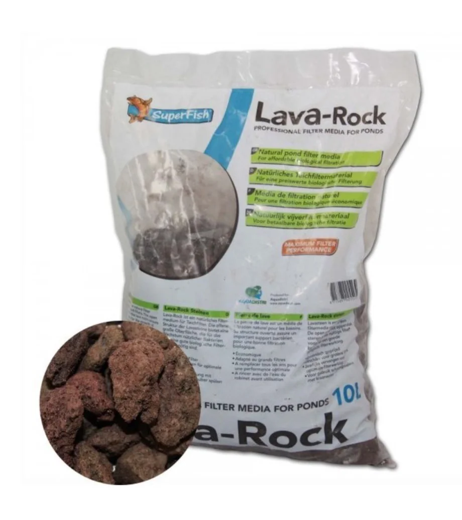 Beskrivelse Lava stein 10 Lirer Naturlig filtermedium. Den grove strukturen til Lava Rock gir enestående filtreringsegenskaper med optimal biologisk virkning. Denne lavasteinen er flott som substrattilsetning i et filter eller akvarium. Fungerer også svært godt biologisk i foss eller rislefiltere der det er godt med oksygen for aerobe bakterier. |