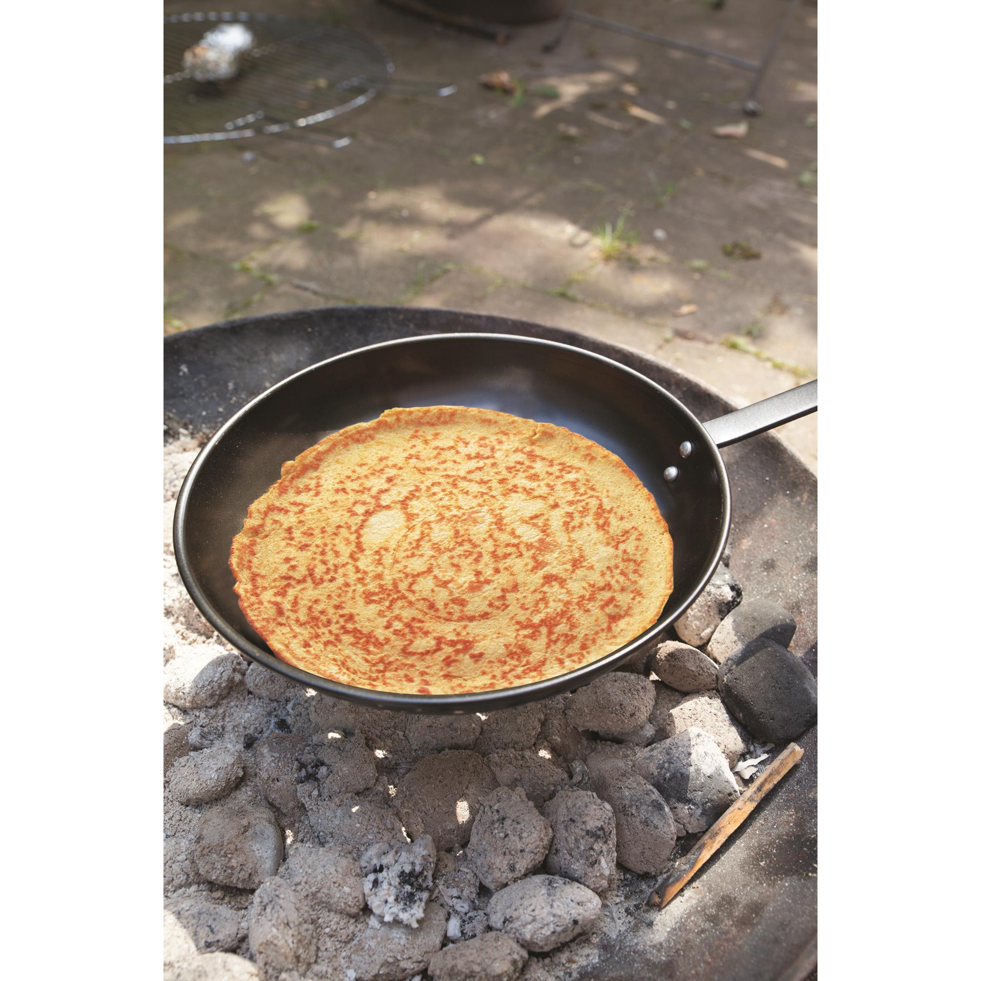 Denne pannen kan anbefales på det sterkeste. Lett og med langt godt skaft som gjør at en kan fint bruke den på bål uten å stå så nært. Super til å steike sopp om høsten på en deilig skogstur. Garanterer at hos oss blir det pannekaker på bålpanne.????
