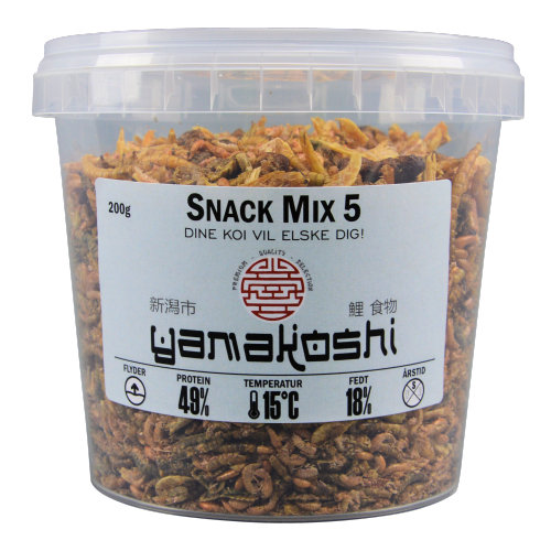 Beskrivelse Snack Mix 5 er en komplett blanding av 5 forskjellige snacks - som fisken din kommer til å elske. Snack Mix 5 er ideell som tilleggsfôr eller som snacks for dine koi og andre hagedamfisk. Snack Mix 5 består av: *Gammarus (tanglopper) *Ferskvanns reker *BSF larver(Black Soldier Fly) *Silkeormlarver *Melormer Snackmix 5 er på mange måter veldig gunstig for fiskene i din koi og hagedammen. Den har et høyt innhold av protein som gir god vekst og styrker immunforsvaret. Det optimaliserer fargene og gir glans og inneholder også mange vitaminer, mineraler og fiber, som er bra for fiskens helse og fordøyelse. Innholdsfortegnelse Rå protein 49,0 % Fett 18,0 % Rå fibre 4,0 % Rå aske 8,0 % Pakningsstørrelse 500g ,ca 2,5L |